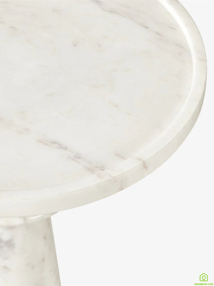 The Bryce Marble Side Table boasts elegant construction, refined appearance, and striking style. Crafted entirely from solid marble, this architectural-style side table will add a touch of sophistication to any corner of your home.